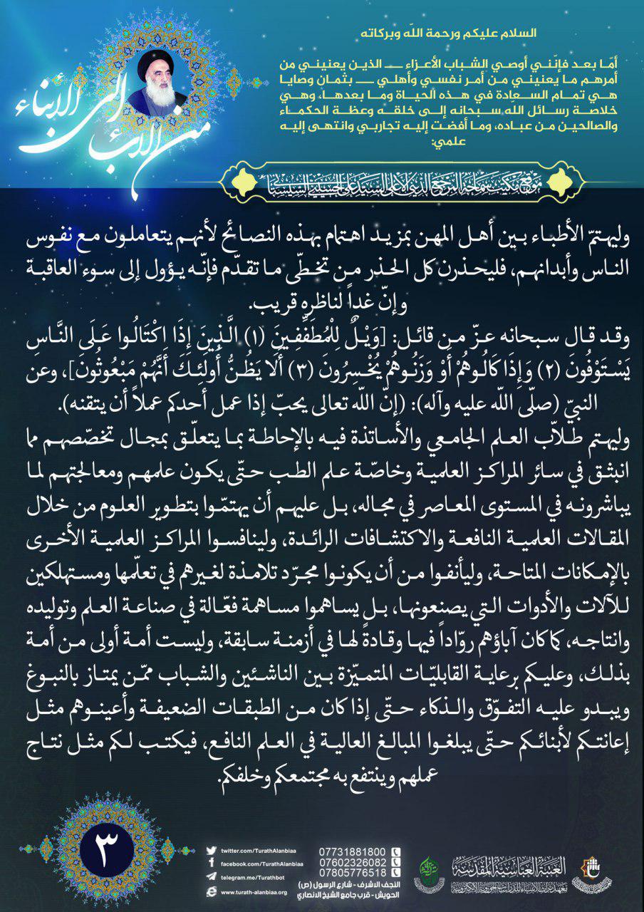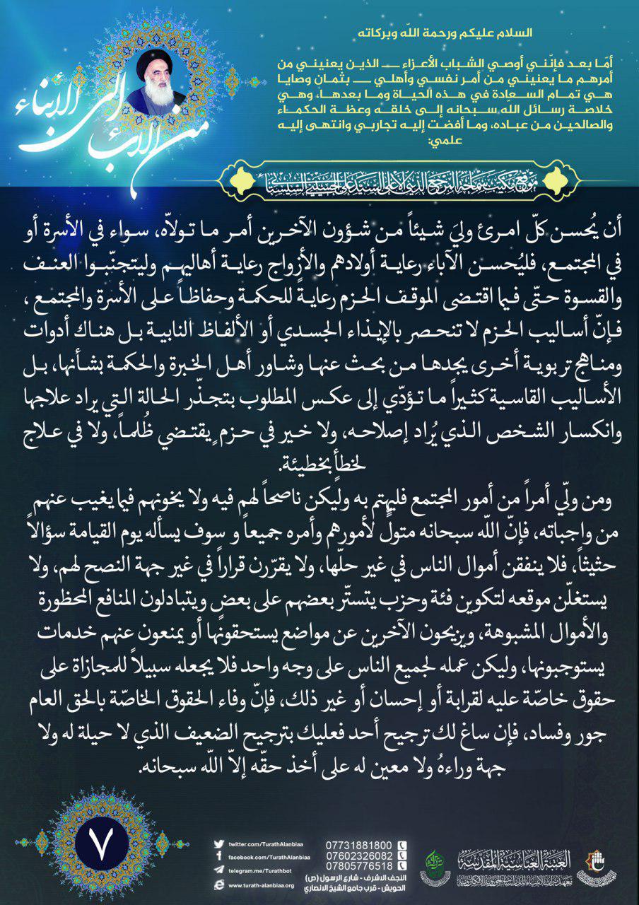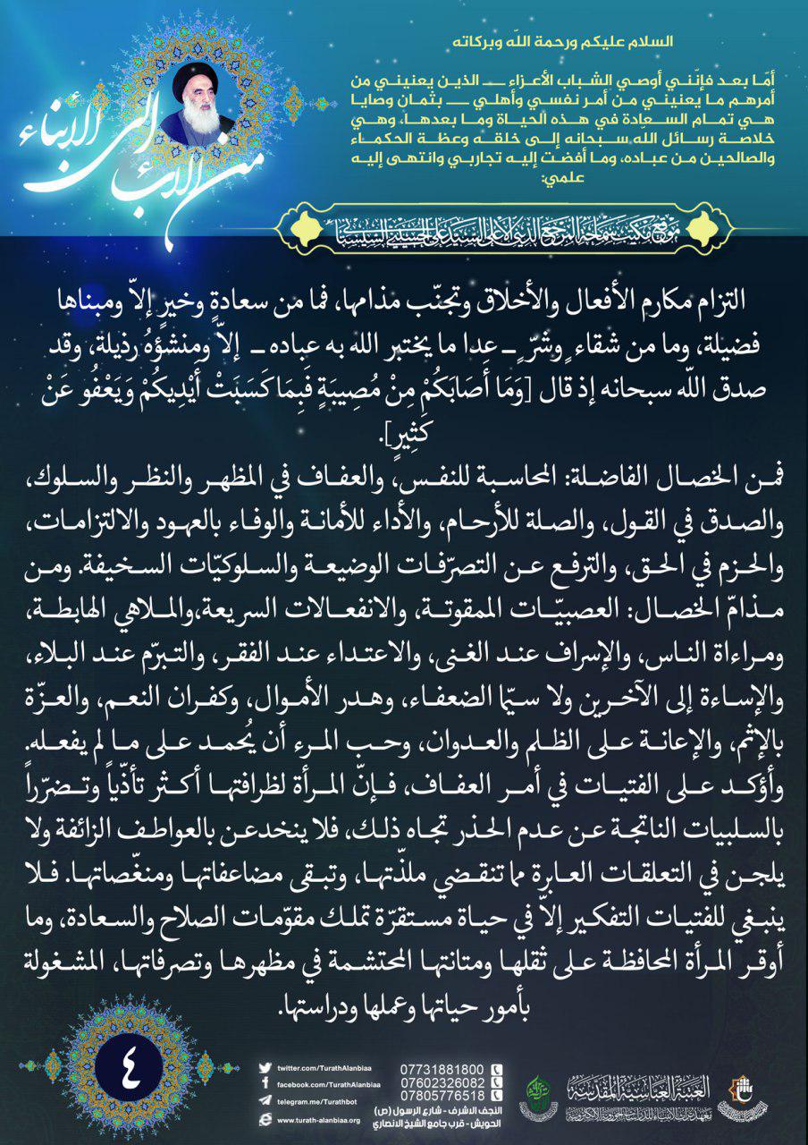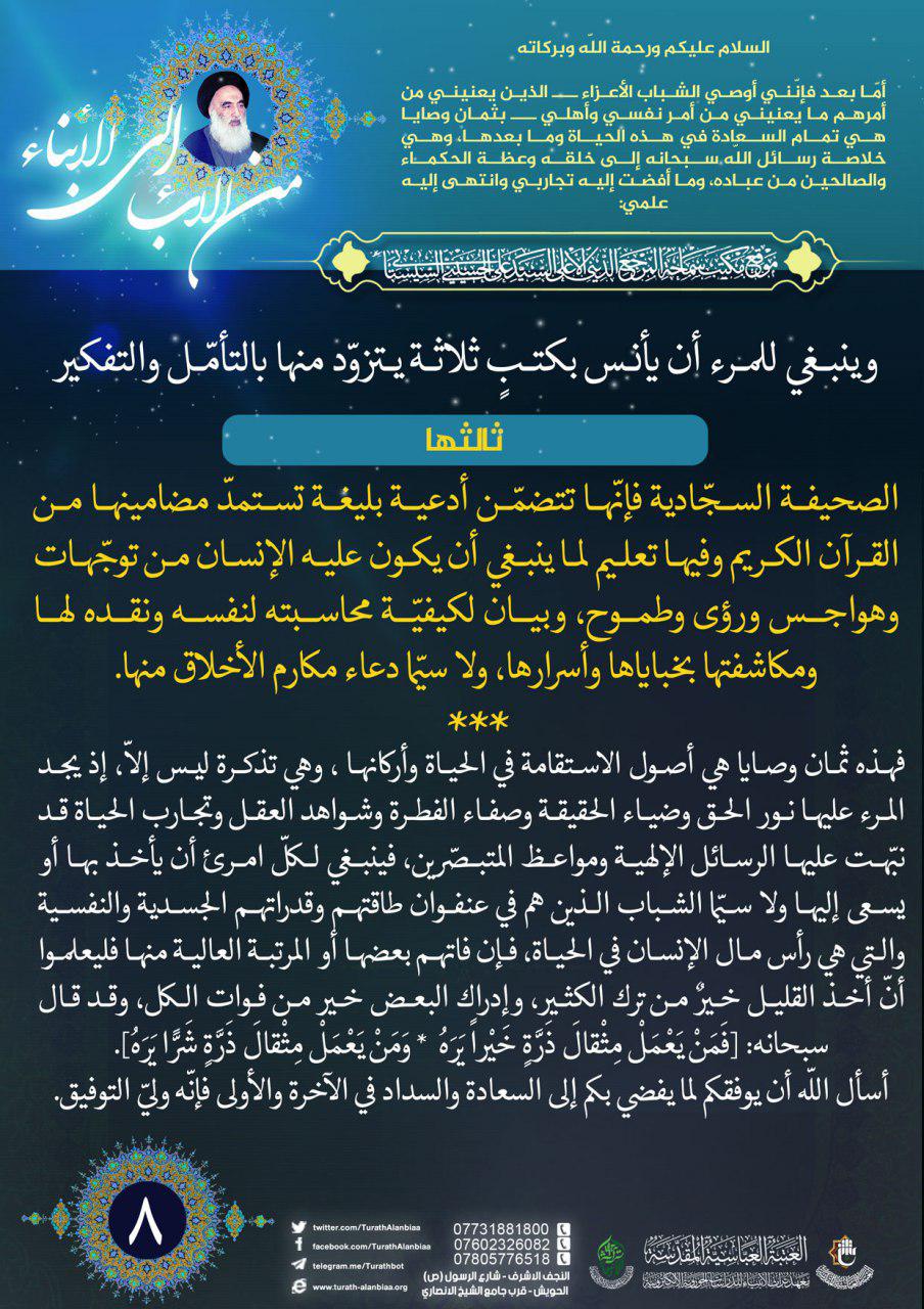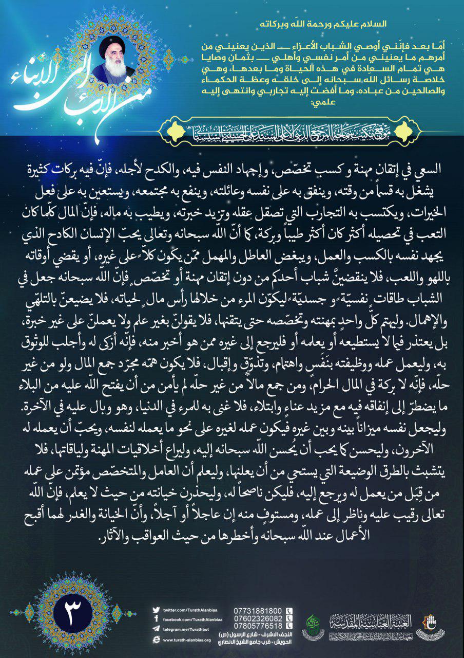 نصائح سماحة السيد السيستاني (دام ظلّه) للشباب المؤمن