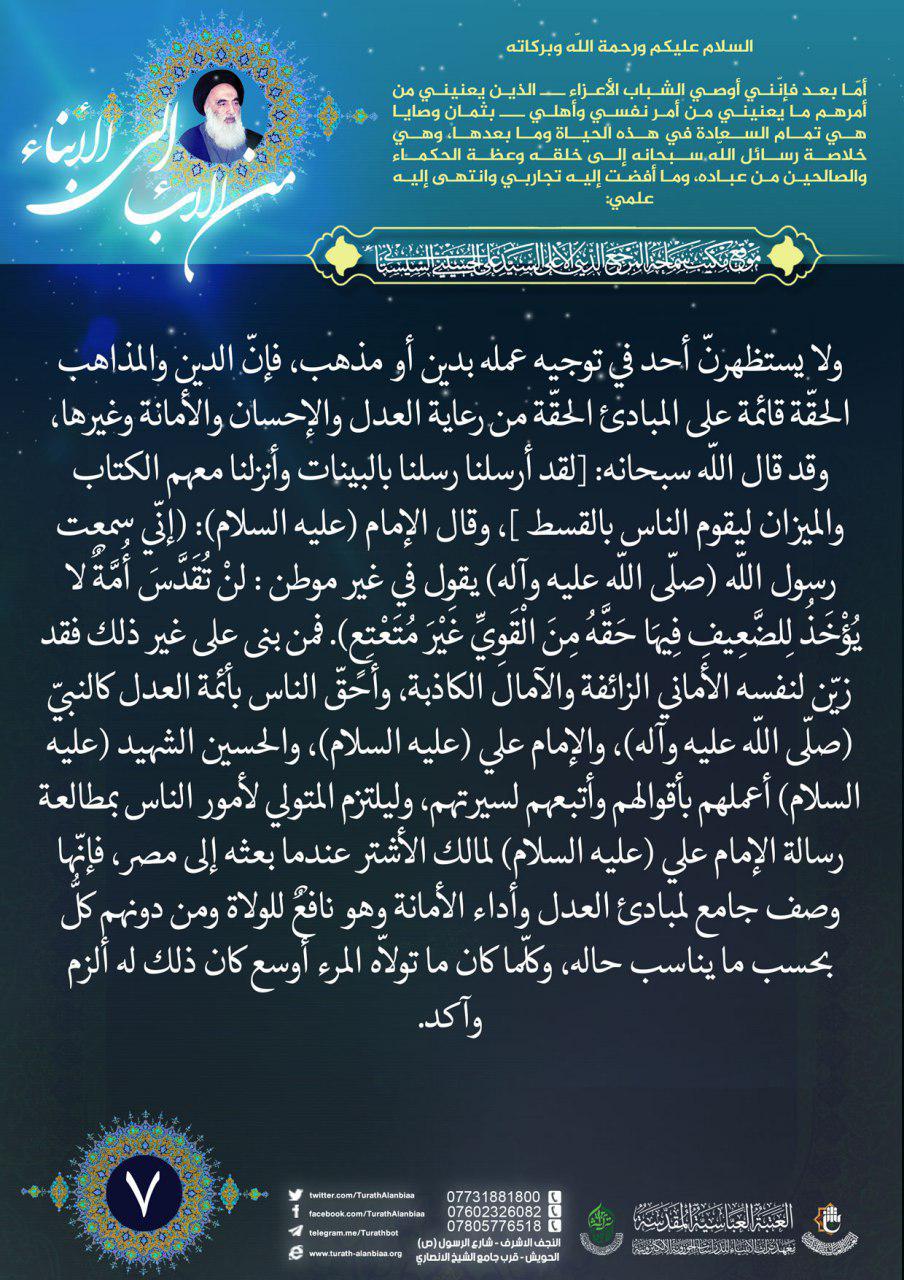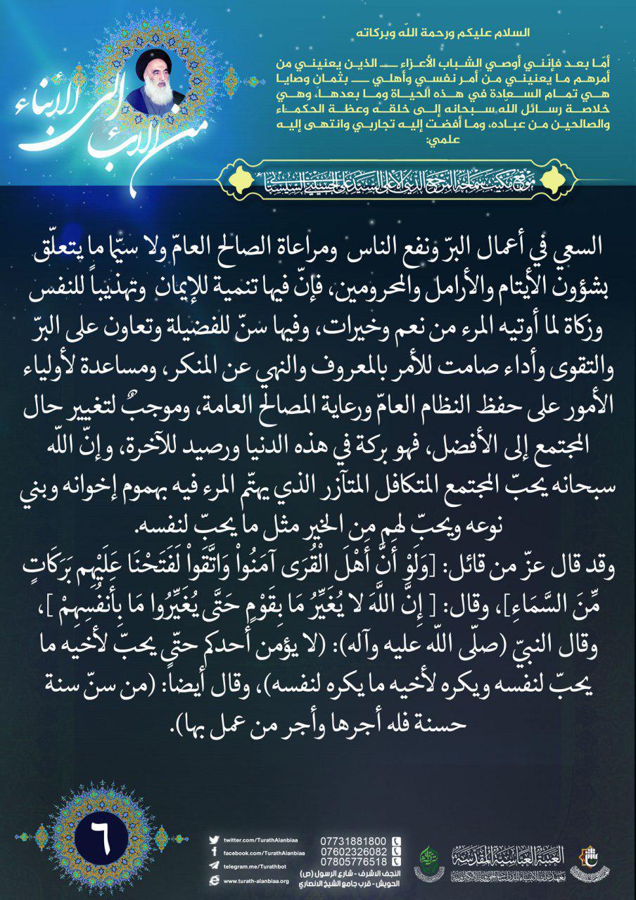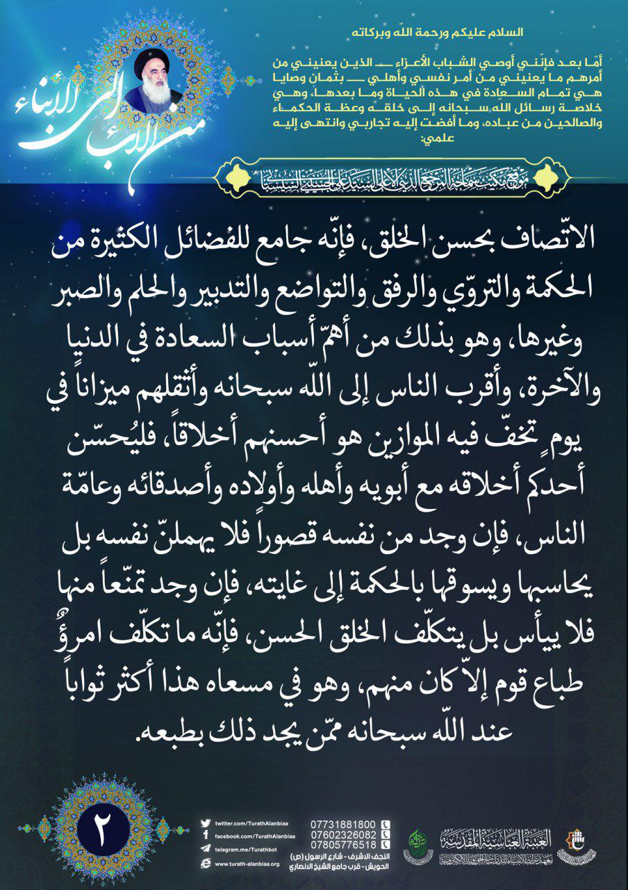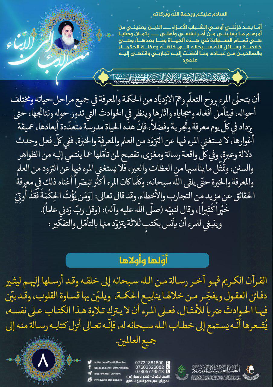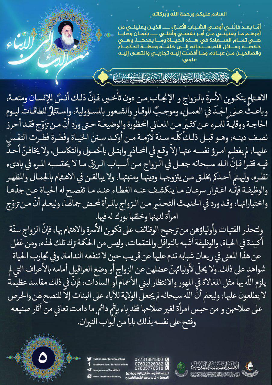 نصائح سماحة السيد السيستاني (دام ظلّه) للشباب المؤمن