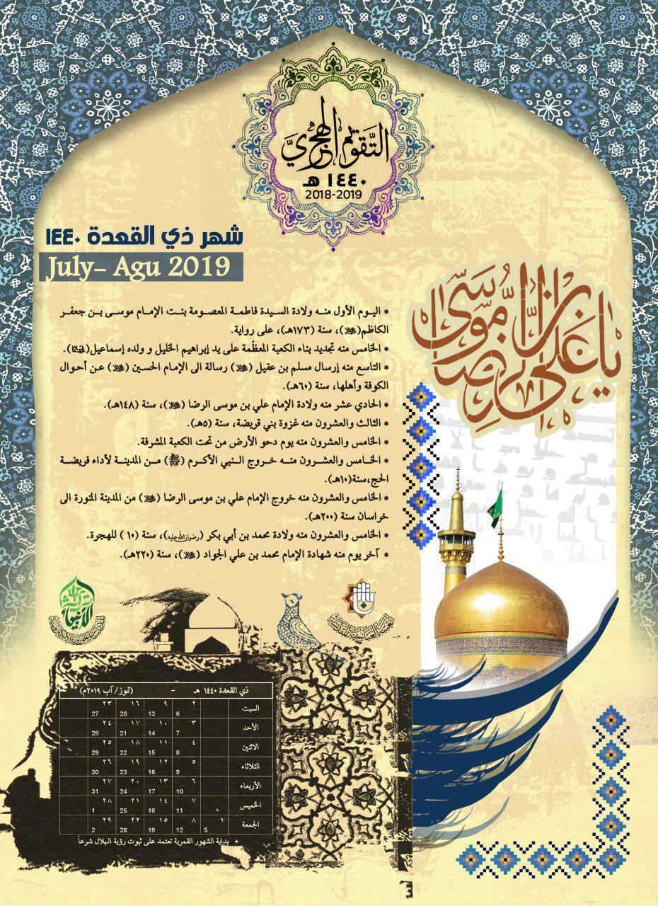 اهم الاحداث في شهر ذي القعدة الحرام لعام 1440 هـجري حسب مواقيت الأهلة لمكتب سماحة السيد السيستاني (دام ظله)