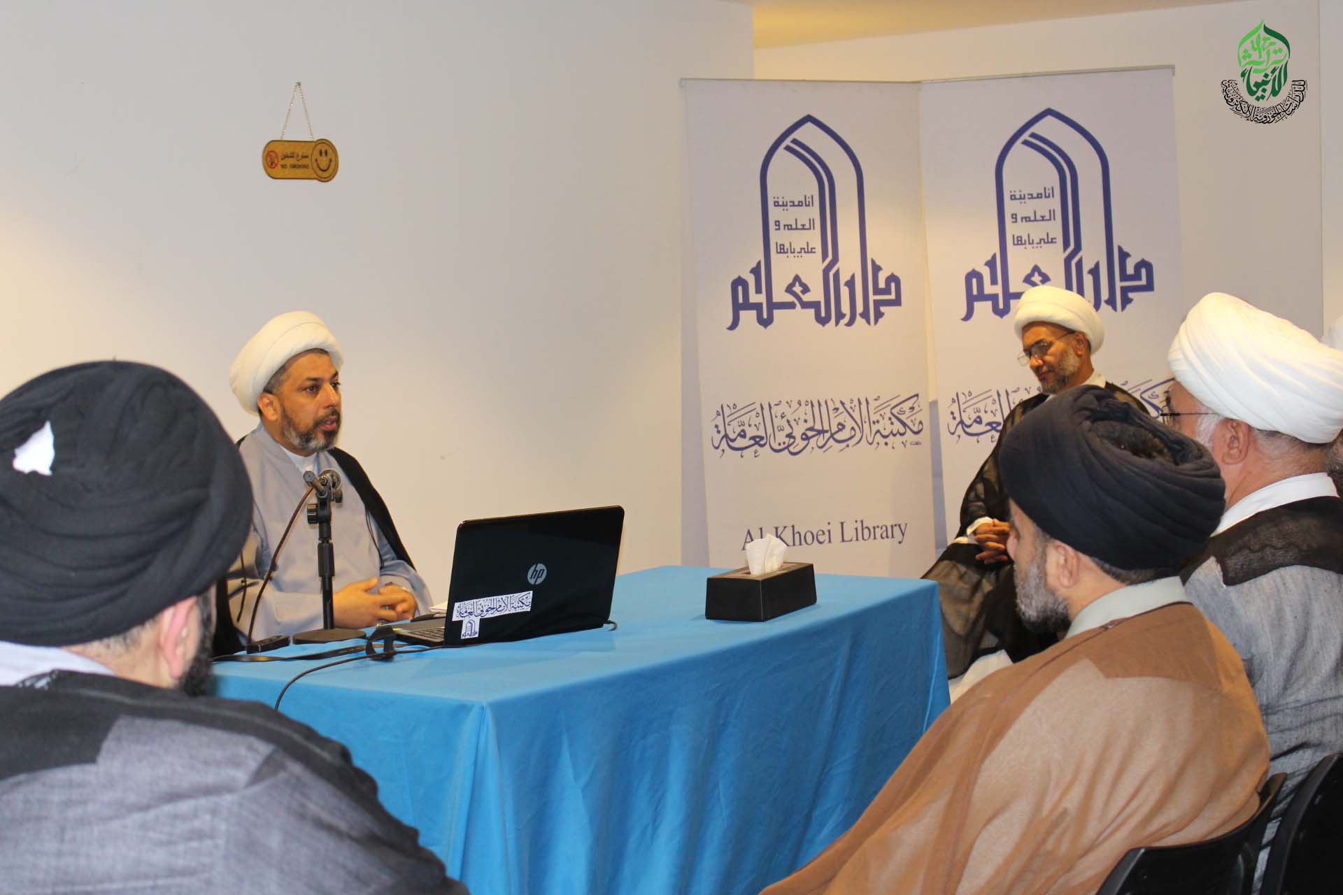 اقامت مكتبة الامام الخوئي العامة الجلسة البحثية الاولى تحت عنوان: (اختلاف الفقهاء في مسألة ثبوت هلال أول الشهر)