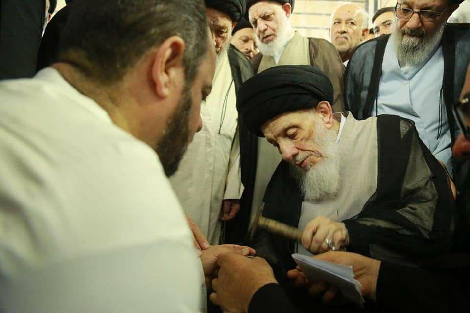 شييع آية الله السيد محمد رضا الخرسان أحد العلماء في حوزة النجف الأشرف العلمية بعد عمر ناهز التسعين.