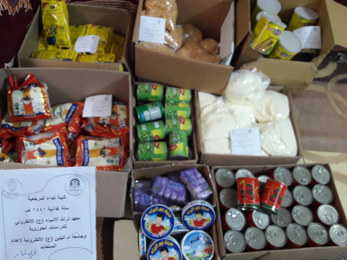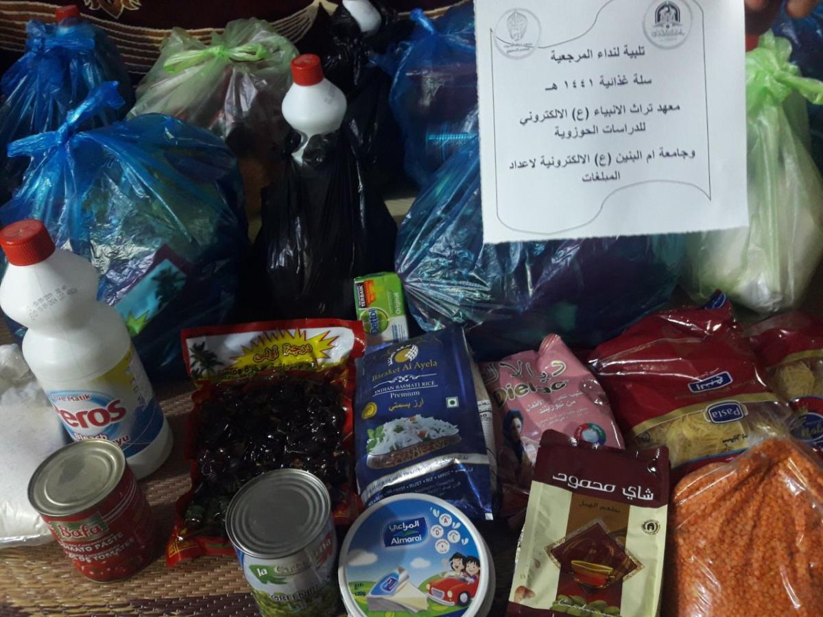 امتثالاً لتوصيات المرجعيّة الدينيّة العُليا وتوجيهاتها وتلبيةً لندائها الداعي لمساعدة العوائل الفقيرة والمتضرّرة، أطلقت مجموعةٌ من منتسبي ومنتسبات العتبة العبّاسية المقدّسة في معهد تراث الأنبياء(عليهم السلام) الإلكتروني للدراسات الحوزويّة، وجامعة أمّ البنين(عليها السلام) الإلكترونيّة لإعداد المبلّغات ومركز القمر، حملةً لتوزيع السلّات الغذائيّة على العوائل الفقيرة والمتضرّرة في مختلف محافظات البلاد.