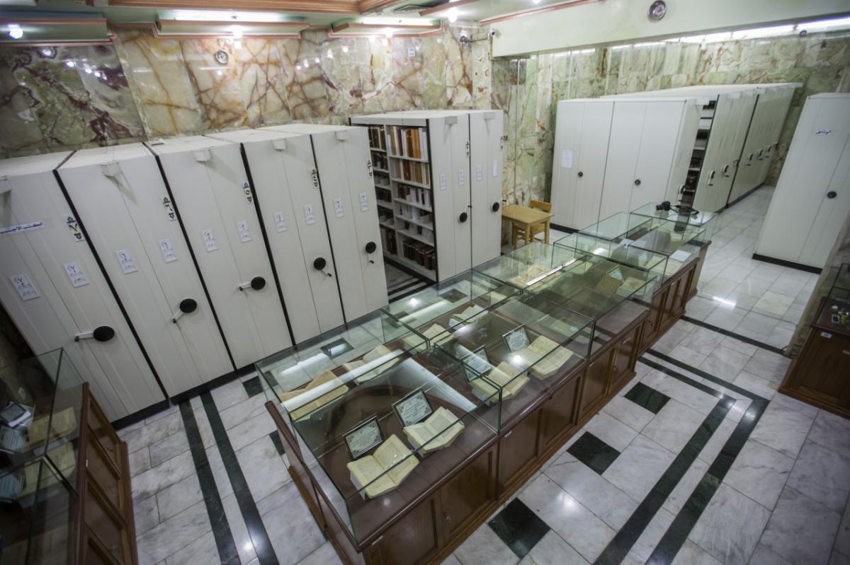 وأضافت: "الخزانةُ عبارة عن قاعةٍ حصينة أُنشِئت بمواصفاتٍ فنّية خاصّة جدّاً، مزوّدة بعددٍ من الخزانات المعدنيّة الموزّعة حسب استخدامها للمخطوطة أو الوثيقة، وهذه الغرفة مزوّدة بأجهزةٍ ومعدّات تعمل على المحافظة على هذه المقتنيات الأثريّة، حيث تعمل على توفير بيئةٍ للخَزْن من ناحية درجات الحرارة والرطوبة المناسبة، وغيرها من الأمور التي تسهم في خلق أجواءٍ مثاليّة للحفظ، وفق المعايير الدوليّة من درجة الحرارة وهي 18 – 20 درجة مئويّة، والرطوبة بمعدل 45 - 55%، وكذلك زوّدت هذه الغرفة بمستشعرات حراريّة وأجهزة مرتبطة بمنظوماتٍ للسيطرة على الحرائق".