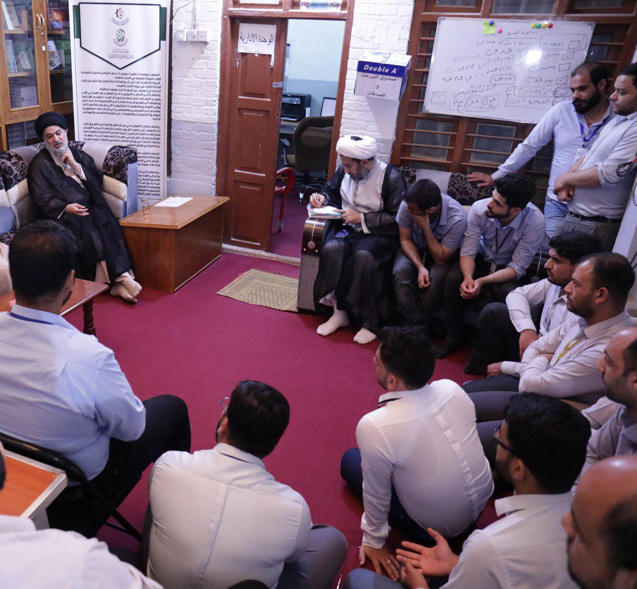 وقد بيّن سماحته أهمية الدور الذي يقوم به المعهد في نشر علوم ومعارف آهل البيت ( عليهم السلام ) بين كافّة الطبقات وخصوصاً الذين يصعب عليهم الالتحاق المباشر بالحوزة العلمية المباركة في النجف الاشرف.