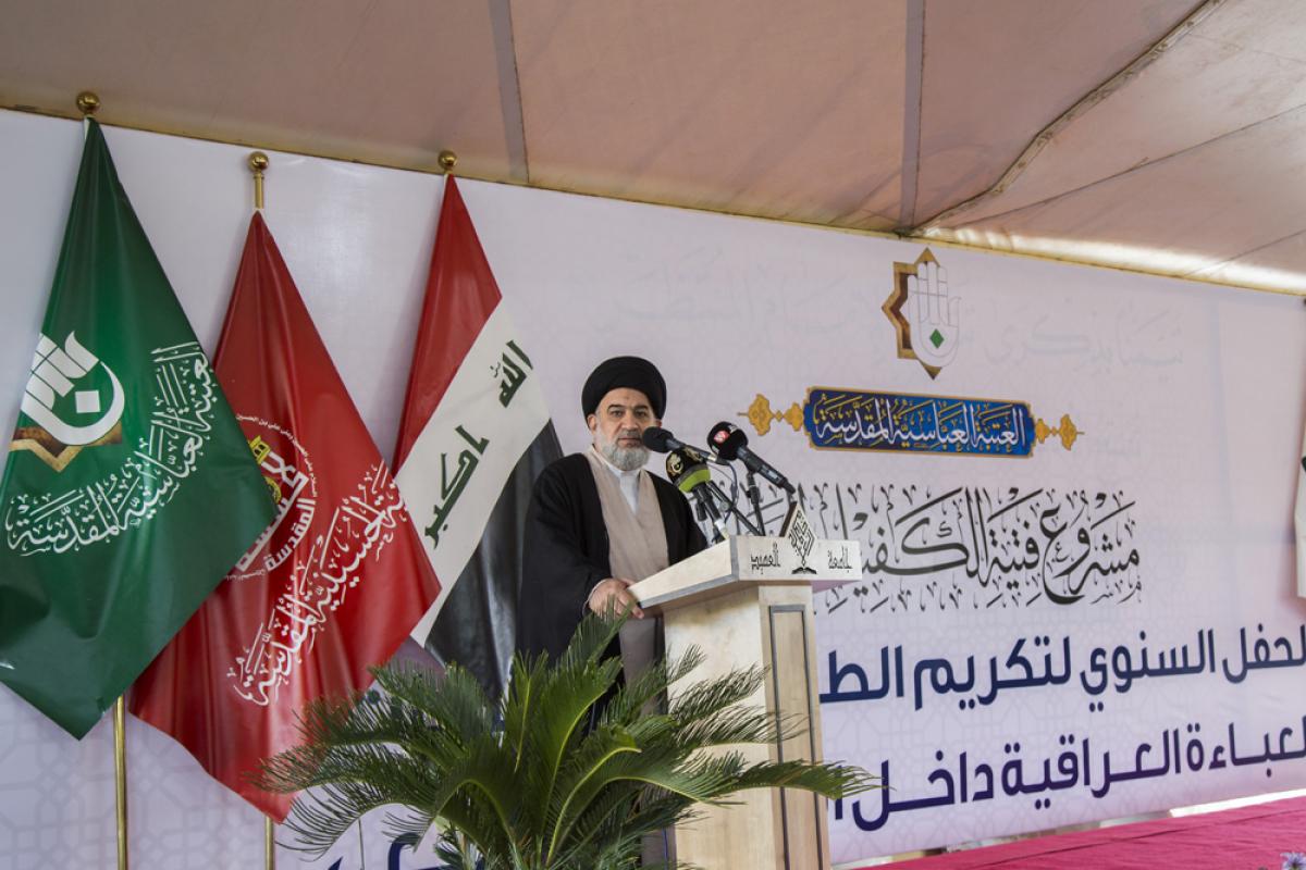 الحفل استُهِلَّ بتلاوة آياتٍ من الذكر الحكيم أعقبتها قراءةُ سورة الفاتحة ترحّماً على أرواح شهداء العراق الأبرار، ثم الاستماع الى النشيد الوطنيّ العراقيّ ونشيد العتبة العبّاسية المقدّسة الموسوم بـ(لحن الإباء)، جاءت بعد ذلك كلمةُ المتولّي الشرعيّ للعتبة العبّاسية المقدّسة سماحة السيد أحمد الصافي،