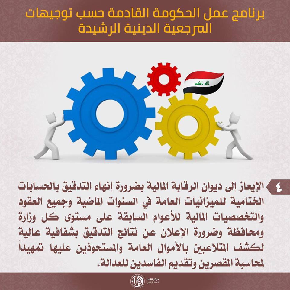 برنامج عمل الحكومة القادم حسب توجيهات المرجعية الدينية الرشيدة